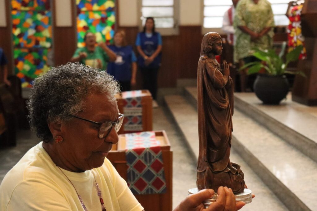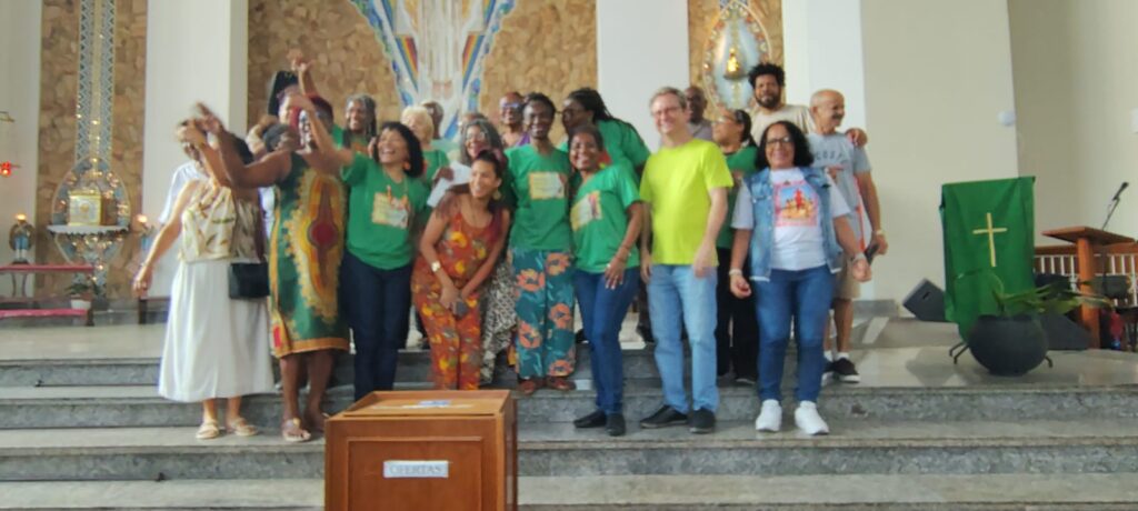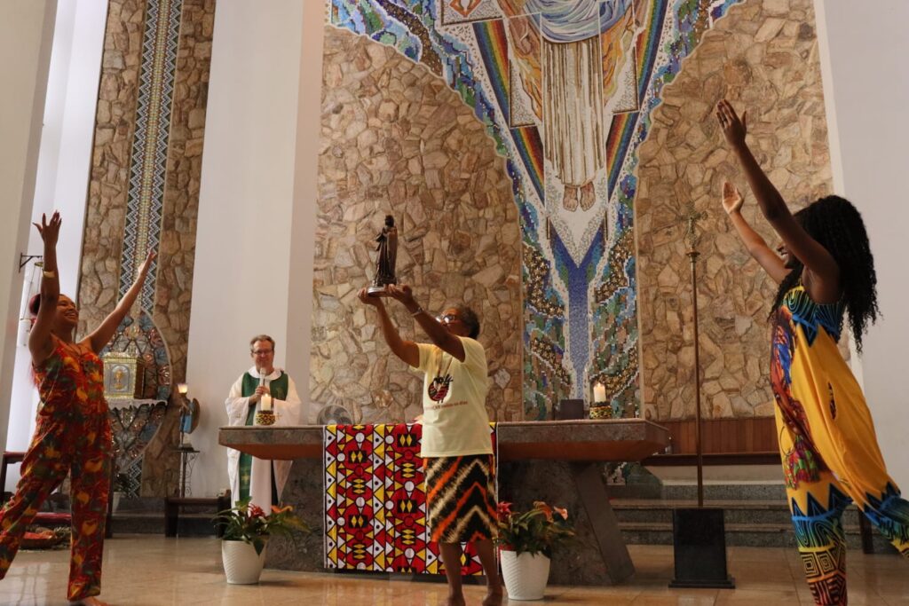 A programação teve início com a Santa Missa presidida pelo pároco Frei João. A celebração foi permeada pela filosofia africana Ubuntu, que nos recorda: “eu sou porque nós somos”. Essa espiritualidade, que nasce da experiência coletiva, deu à celebração um tom de reencontro com as raízes, fortalecendo as identidades, memórias e a história de todos os presentes. Nesse abraço comunitário, mais uma semente de resistência e esperança foi lançada na terra fértil da vida — terra que guarda e revela os rostos, lutas e histórias de tantas gentes.