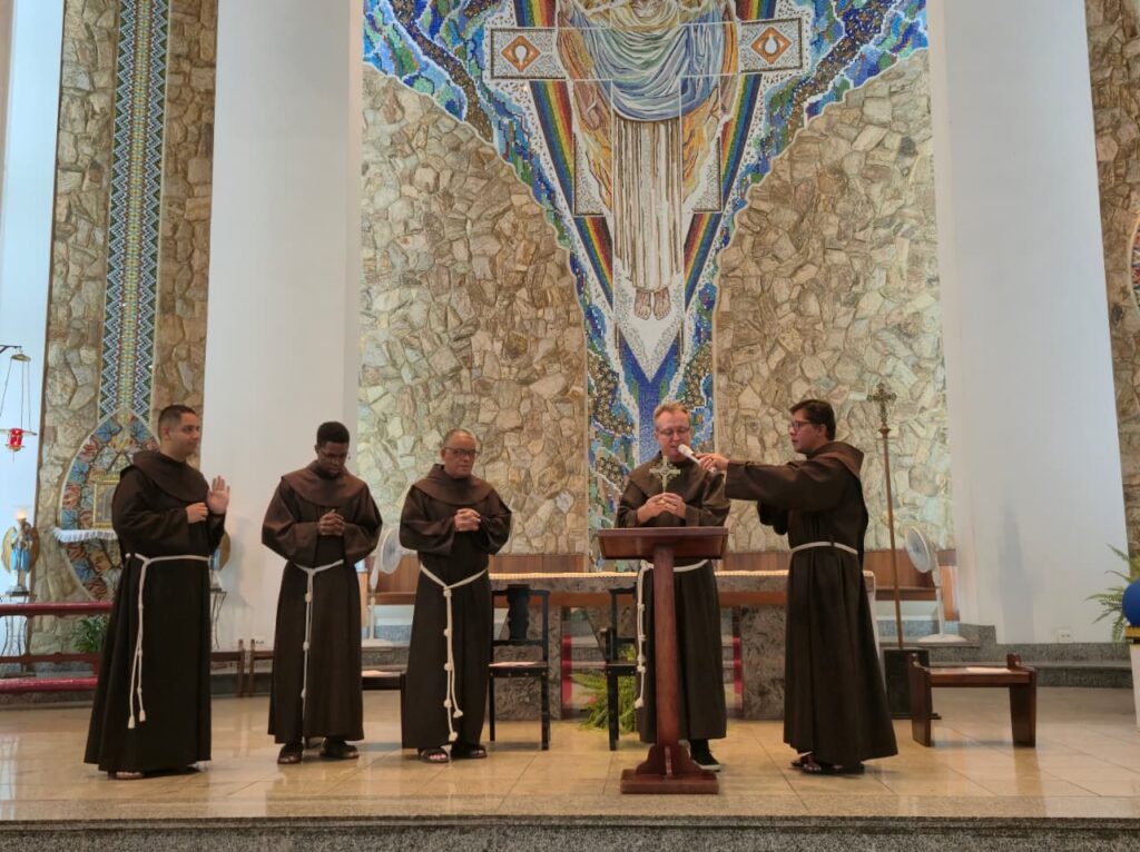 Na Foto os Freis, OFM: Carlos Guimarães, Felipe Carretta, Pedro Vitangui, João Reinert e Diogo Henrique.