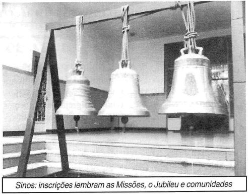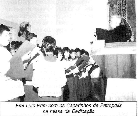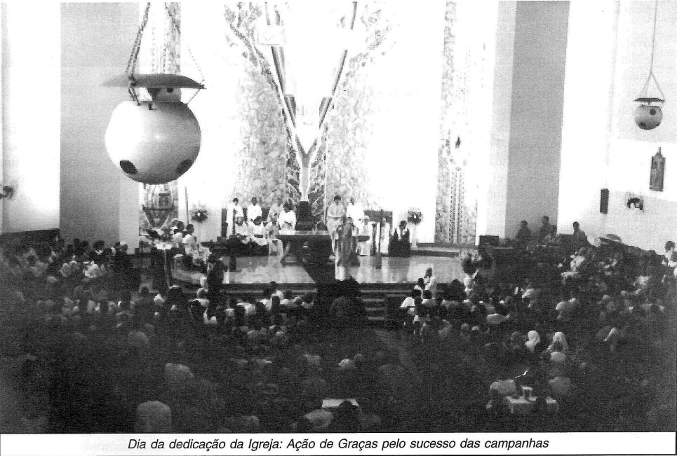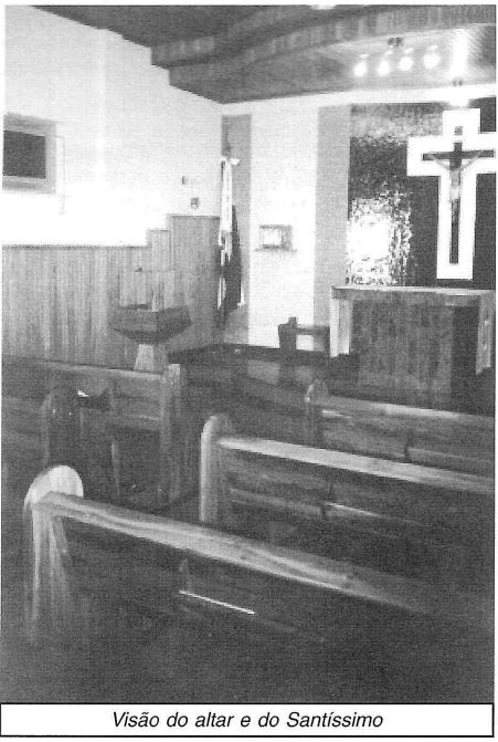 As fotos de arquivo do documento mostram momentos importantes, como a missa de dedicação, o momento da comunhão, a colocação dos sinos na torre e os diversos freis franciscanos que apoiaram a paróquia.