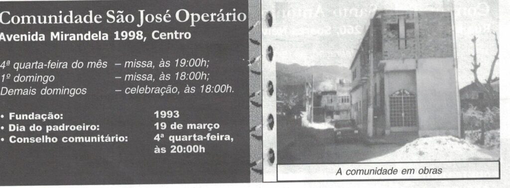 Com ajuda vinda do exterior, o material que sobrou da reforma da Matriz e várias campanhas para arrecadação de tijolos e cimento — realizadas entre os próprios paroquianos —, além de bingos, rifas e cestones de Natal, foi possível viabilizar a construção da comunidade. Em 1994, aconteceu a 1ª festa de São José.